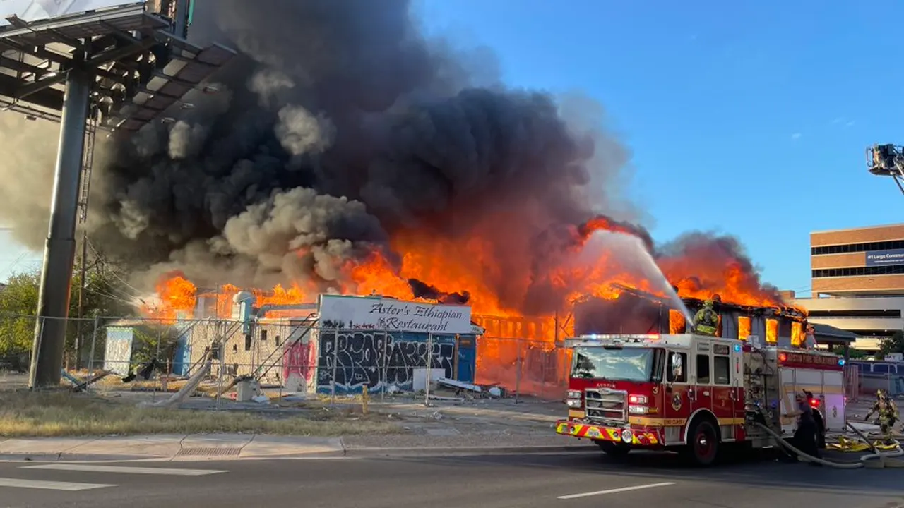 The Austin Fire Department extinguished a blaze at an abandoned hotel near Interstate 35 on Sunday, prompting a temporary power shutdown in the area.