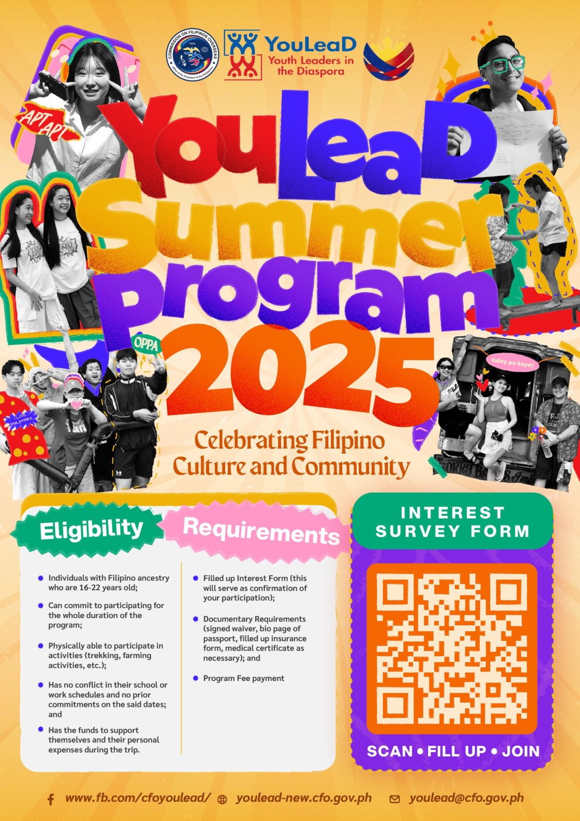 The Commission on Filipinos Overseas (CFO) is inviting Filipino American youth, aged 16 to 22, to apply for the 2025 Youth Leaders in the Diaspora (YouLeaD) Summer Program.