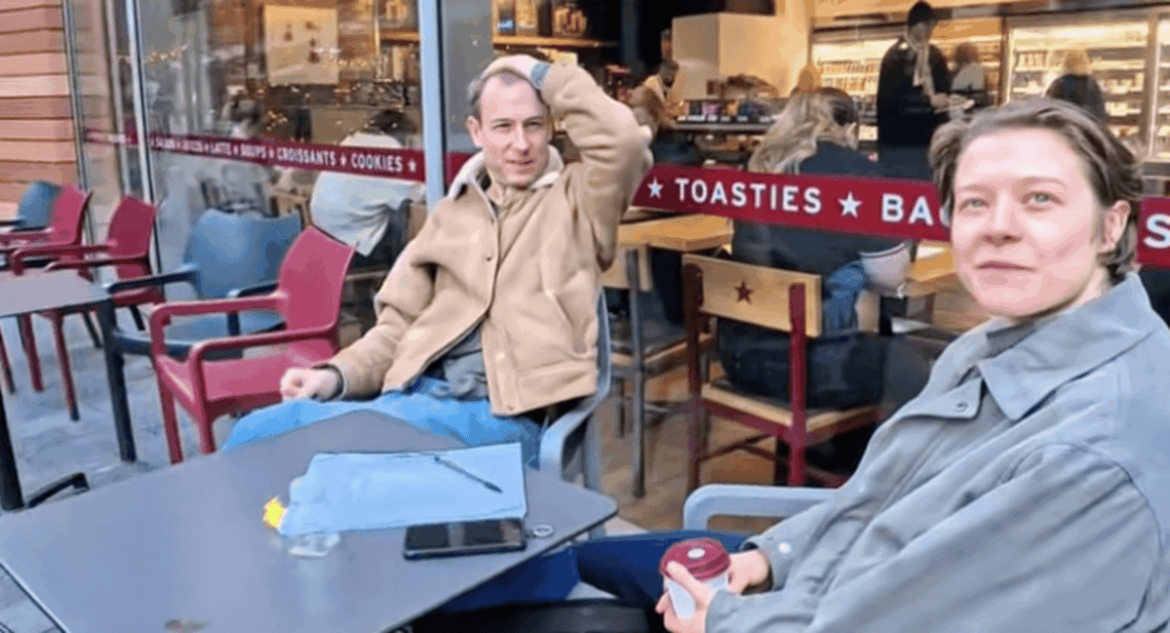 Online observers have identified the location as a casual food establishment in London, based on visible storefront elements in the background of the video.