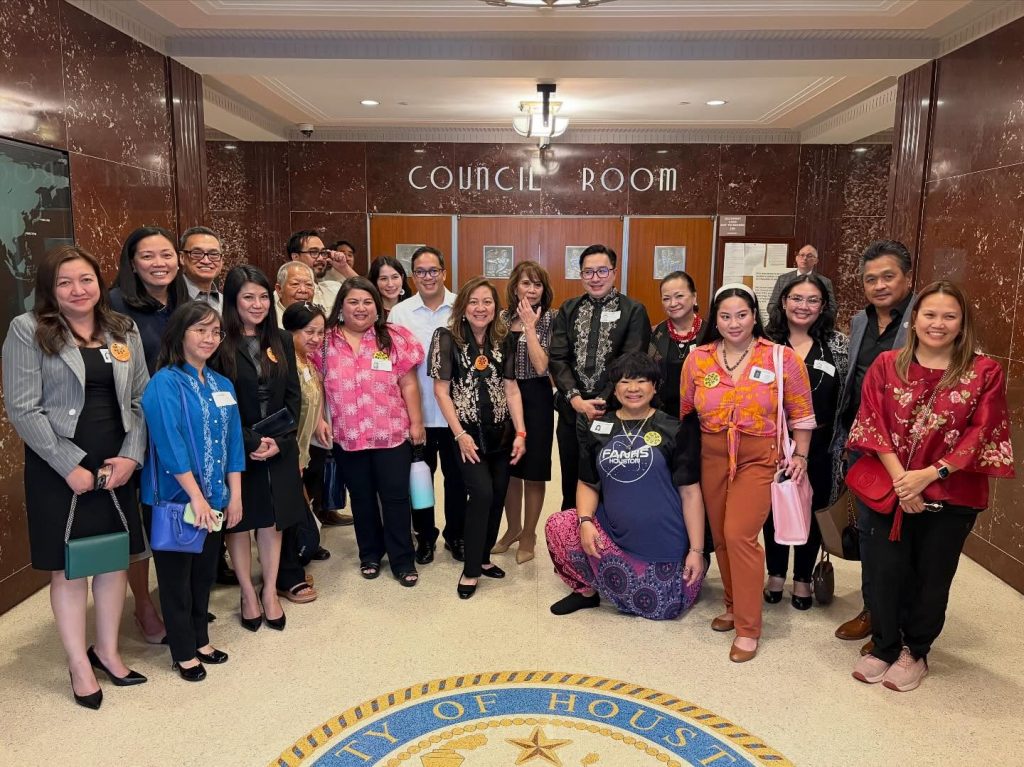 FANHS-HTX members Dr. Pat Lindsay Catalla-Buscaino, Cybil Pallugna-Saenz, and Anthony Guevarra led a delegation of Filipino community leaders who spoke before Mayor John Whitmire and several council members during a public session of the Houston City Council on October 7 to officially launch the celebration.