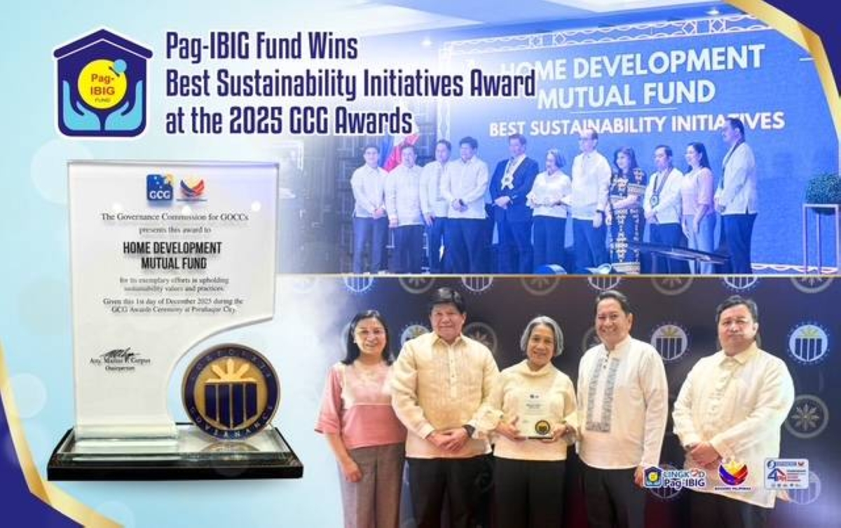 PARAÑAQUE CITY — The Home Development Mutual Fund (Pag-IBIG Fund) received the Best Sustainability Initiatives Award for 2025 from the Governance Commission for Government-Owned or -Controlled Corporations (GCG), recognizing the agency’s efforts to integrate sustainability values and responsible practices across its programs, services, and internal operations.